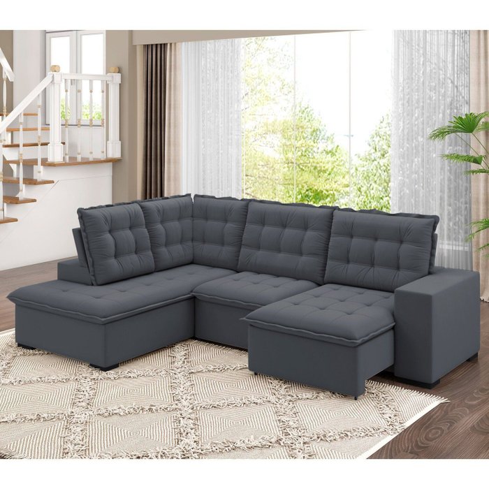 Sofá de Canto Retrátil e Reclinável 5 Lugares 310cm Belluno Grafite