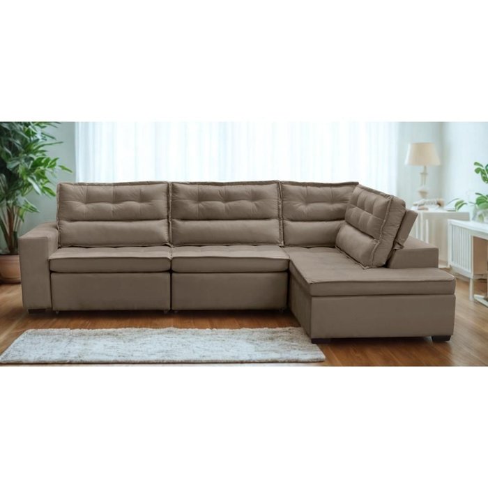 Sofá de Canto Retrátil e Reclinável com Molas 3,00x2,00 Viena Suede Cappuccino Mirra Decor