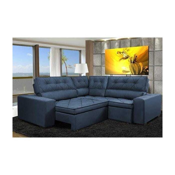 Sofá de Canto Retrátil e Reclinável com Molas Cama Inbox Austin 2,20M x 2,20M Suede Velusoft Azul