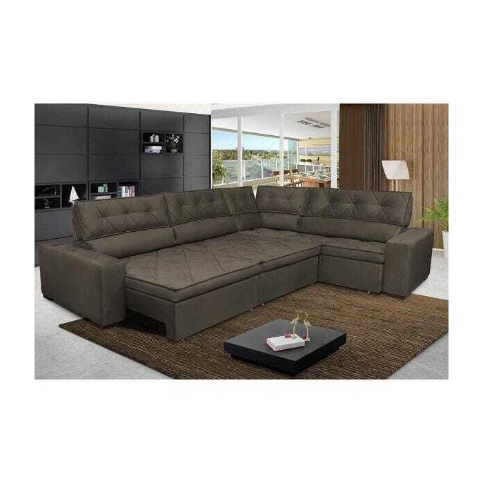 Sofá de Canto Retrátil e Reclinável com Molas Cama Inbox Austin 3,65x2,54 ou 2,54x3,65 Suede Café