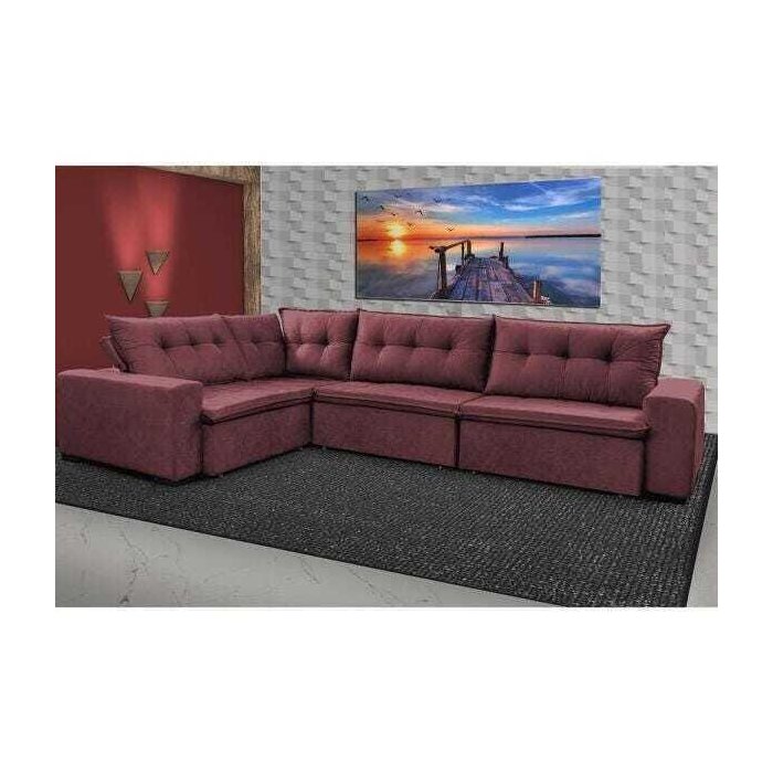 Sofá de Canto Retrátil e Reclinável com Molas Cama Inbox Oklahoma 3,45x2,41 ou 2,41x3,45 Vinho