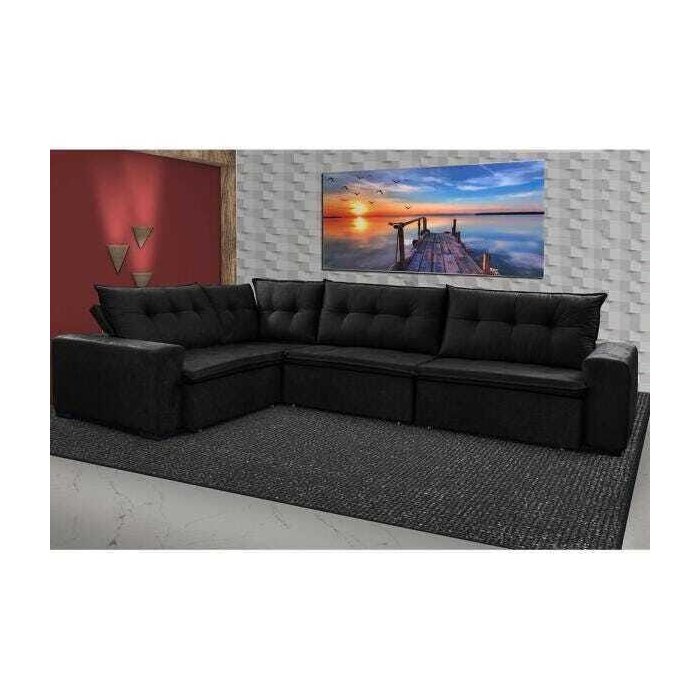 Sofá de Canto Retrátil e Reclinável, Molas Cama Inbox Oklahoma 3,45x2,41 ou 2,41x3,45 Suede Preto