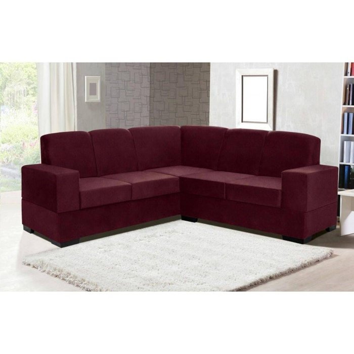 Sofá de Canto Suécia Tecido Suede Pluma Vinho Vinho