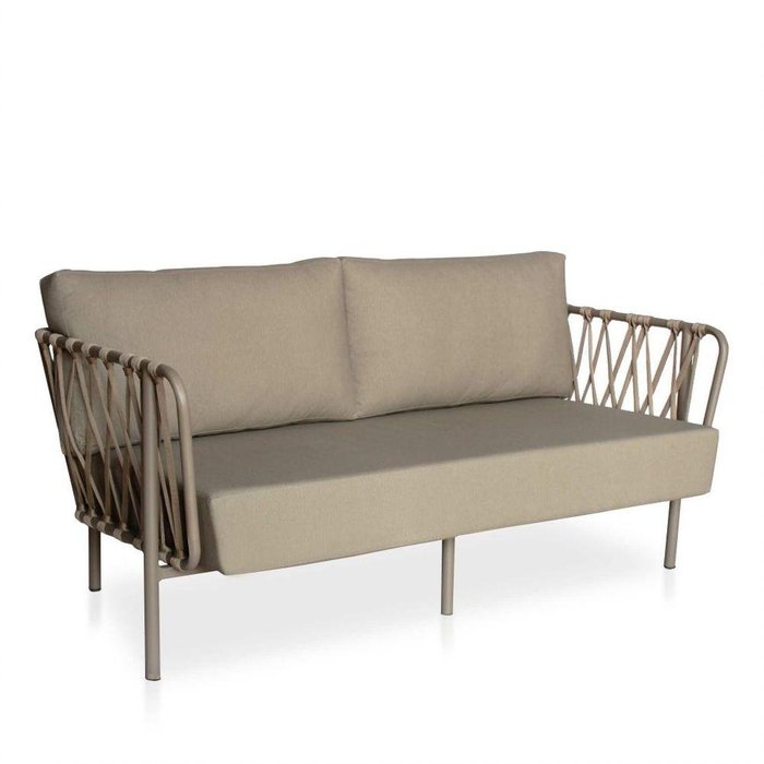 Sofá Decorativo 2 Lugares área Externa Jardim Pergolado De Alumínio Tramado Em Fibra Estonada Bege