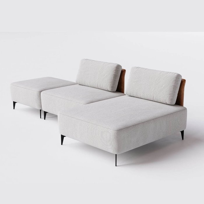 Sofá Dream Box Chaise com Puff 3,00m em Boucle Alaska Cinza e Corino Durango Terracota - Home Mobily
