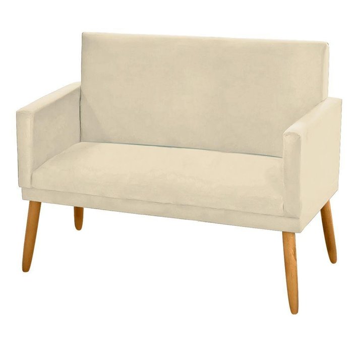 Sofá Pés Palito Estofado De 2 Lugares Nina Tecido Sintético Bege