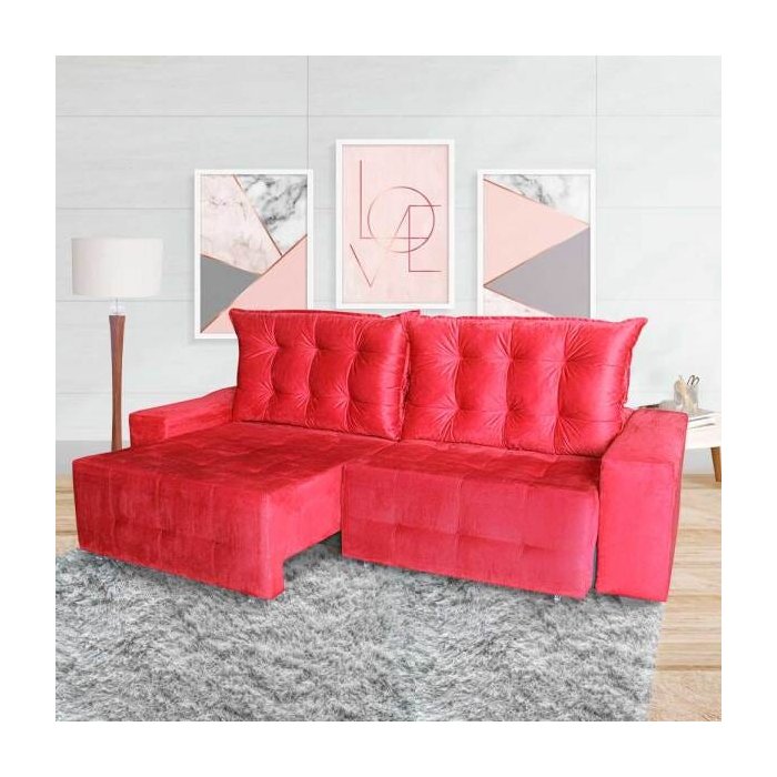 Sofá Euro Retrátil e Reclinável 3,00M Veludo Light Vermelho - WS Estofados