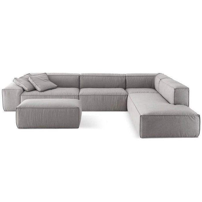 Sofá Family Box de Canto 360x200 com Pufe 110cm Linho Cinza