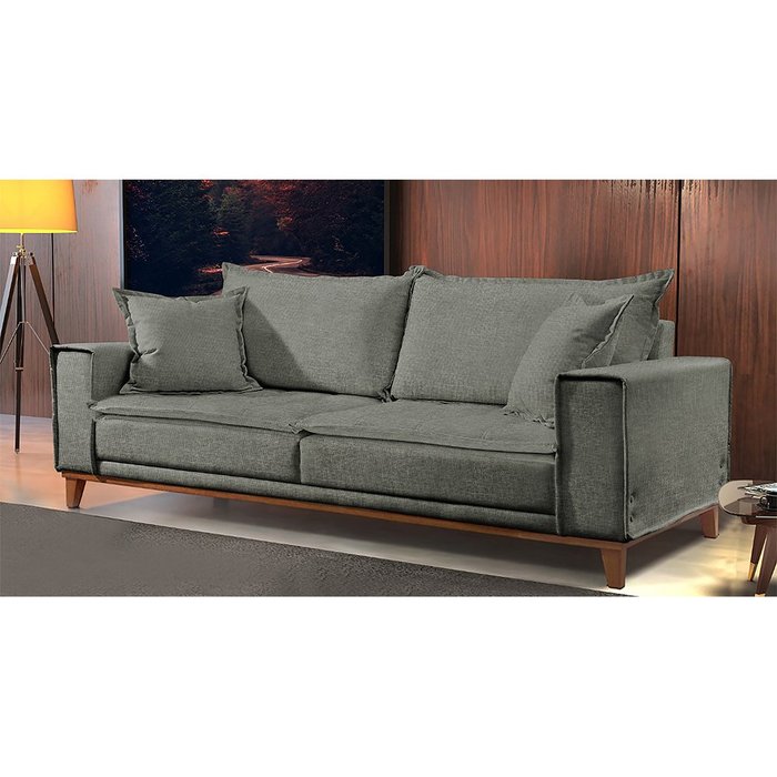 Sofá Fixo 3 Lugares Luxo 200 Cm Aquiles Cinza