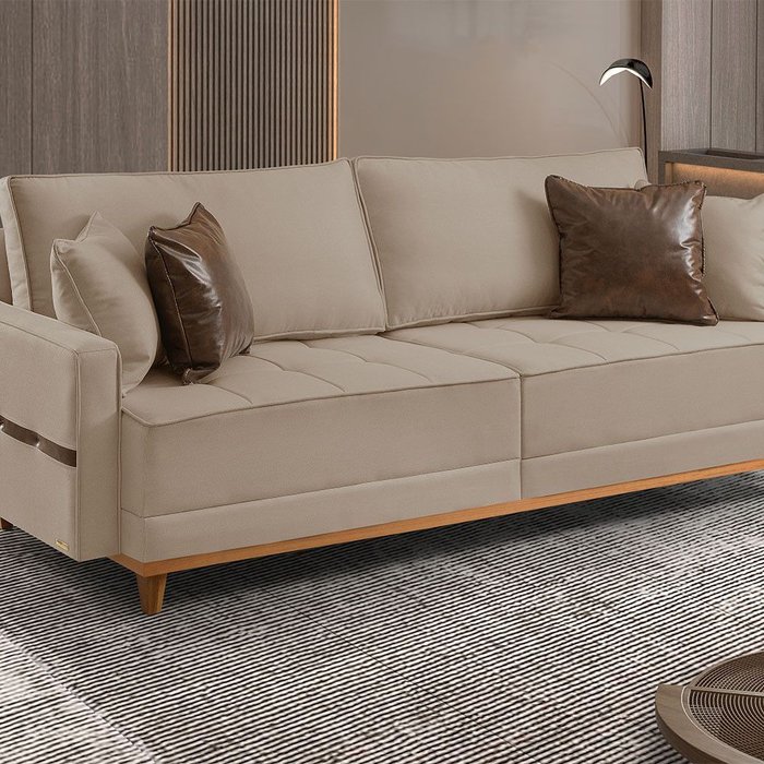 Sofá Fixo 3 Lugares M-203 2,00m Molas Bonnel Almofadas Soltas Linho Estofados Martins Bege