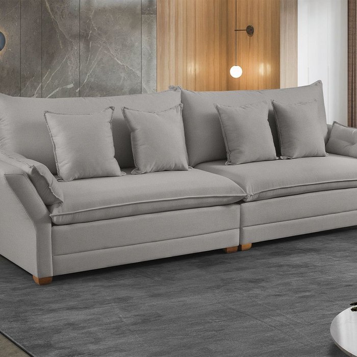 Sofá Fixo 6 Lugares M-198 2,90m Molas Bonnel Almofadas Soltas Linho Estofados Martins Cinza