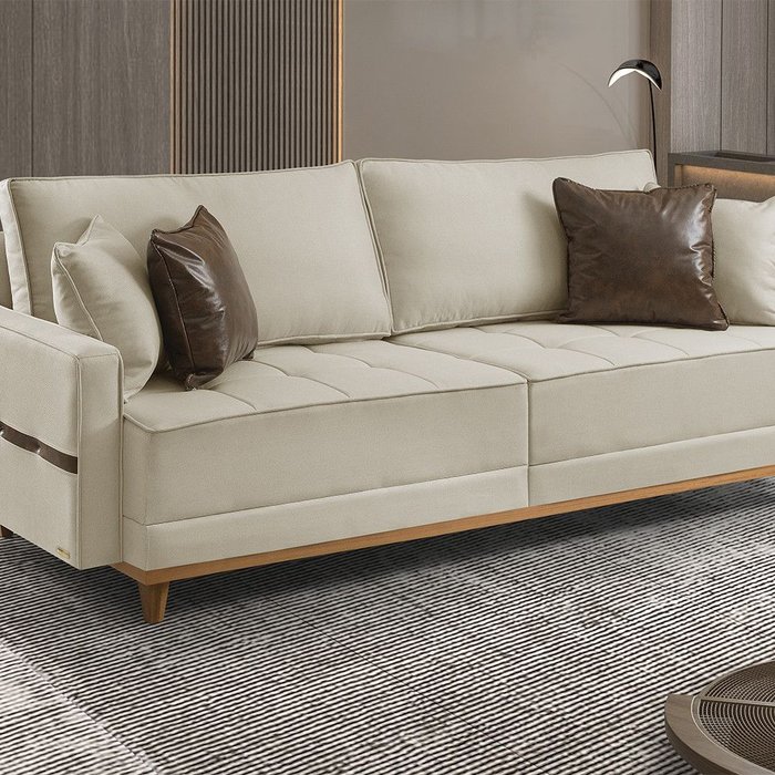 Sofá Fixo 6 Lugares M-203 2,60m Molas Bonnel Almofadas Soltas Linho Estofados Martins Creme