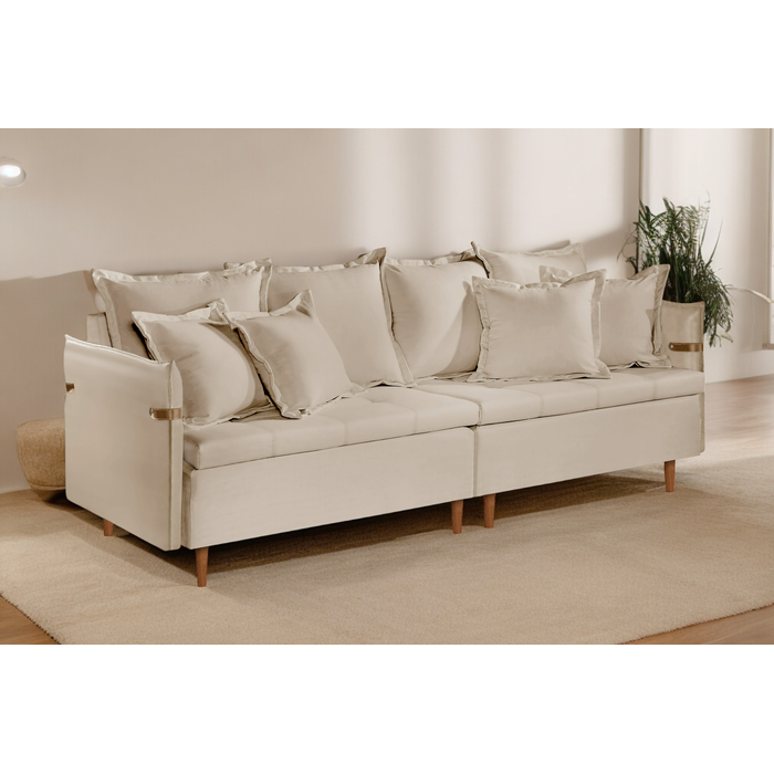 Sofá Fixo Atlas 3 Lugares Luxo 2,00 M Bege Claro