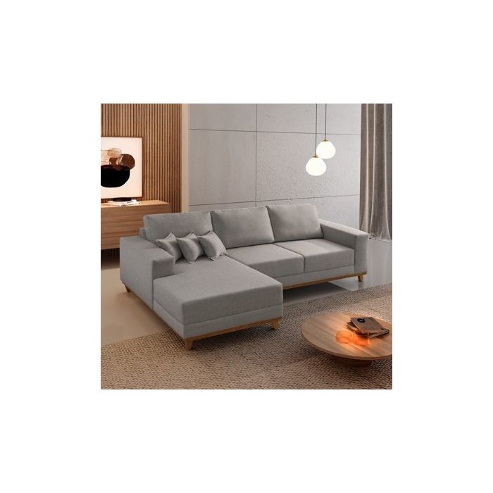 Sofá Fixo com Chaise 2,5m Cronos Linho com Molas Lado Esquerdo Meu Sofá Online Cinza