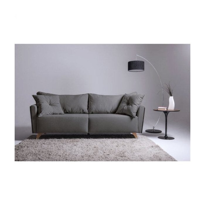 Modelo de living, assentos com percintas elásticas, almofada fixo e espuma densidade 26 soft, revestido com manta de silicone, encosto de almofada solta com fibra de silicone, estrutura de madeira de eucalipto, fixação grampos resinados e parafusos. Pés em madeira.