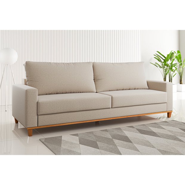 Sofá Fixo Living 2 Almofadas Soltas 4 Lugares 220cm Ares Bege