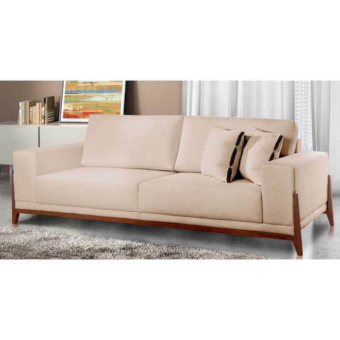 Sofá Fixo Magnus 3 Lugares Luxo 190cm Castellar Móbile Bege Claro