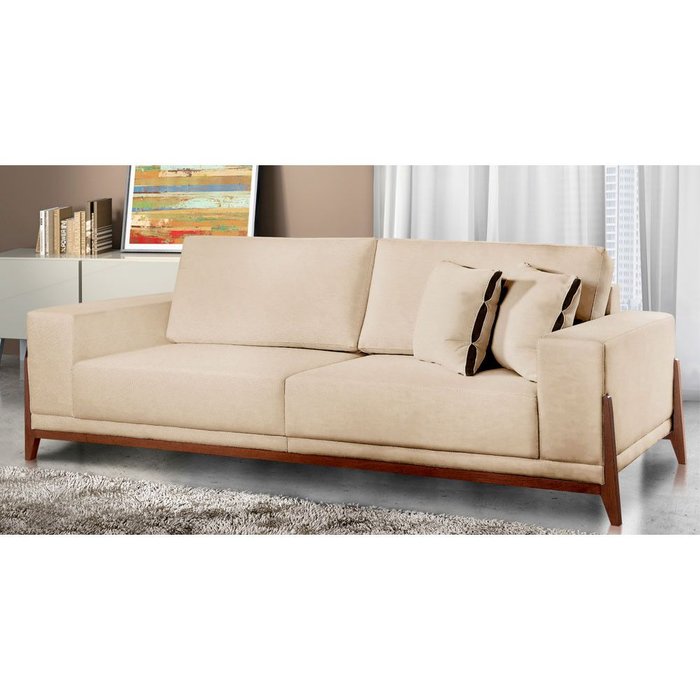 Sofá Fixo Magnus 3 Lugares Luxo 210cm Bege Claro