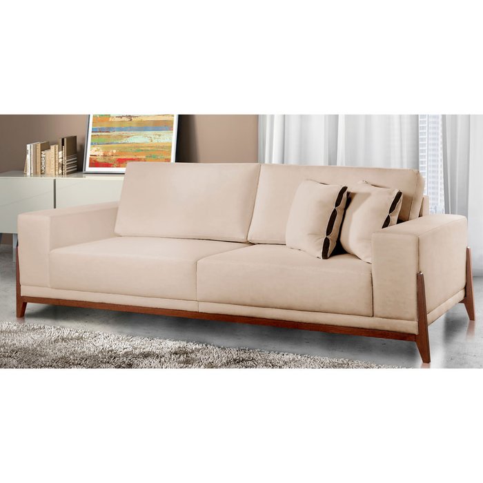 Sofá Fixo Magnus 3 Lugares Luxo 210cm Castellar Móbile Bege Claro