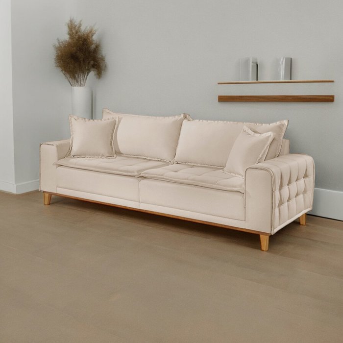 Sofá Fixo Orfeu 3 Lugares Luxo 2,00m Bege Claro