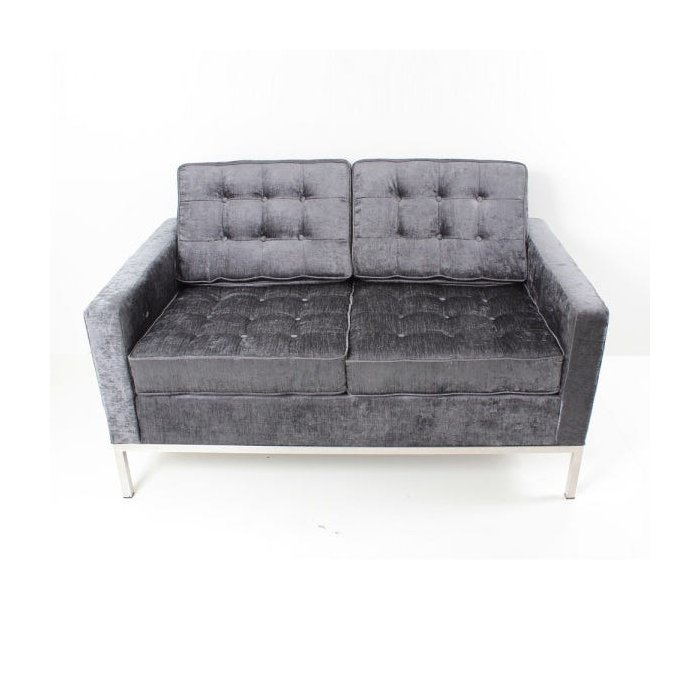 O Sofá, Sofá Florense Knoll FK 2 Lugares possui acabamento e qualidade de alto padrão fieis aos traços originais do modelo de 1954 da designer Florense Knoll, estrutura fabricada com chapas de madeira nobre bactericida e secas em estufa, madeira de reflorestamento 100% ecológica, espuma certificada 100% poliuretano D28, percintas elásticas italianas, almofadas do encosto e assento soltas com costuras quadriculadas e botões encapados, cada pequeno quadrado é costurado individualmente com s nas laterais mantendo o padrão original de 1954, base e pés em aço cromado, revestimento suede brilho.