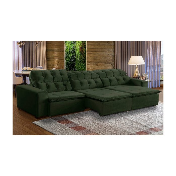 Sofá Grande 3,50M Retrátil Mola Bonel D28 Pillow Reclinável Alasca Veludo Verde - Grandellar