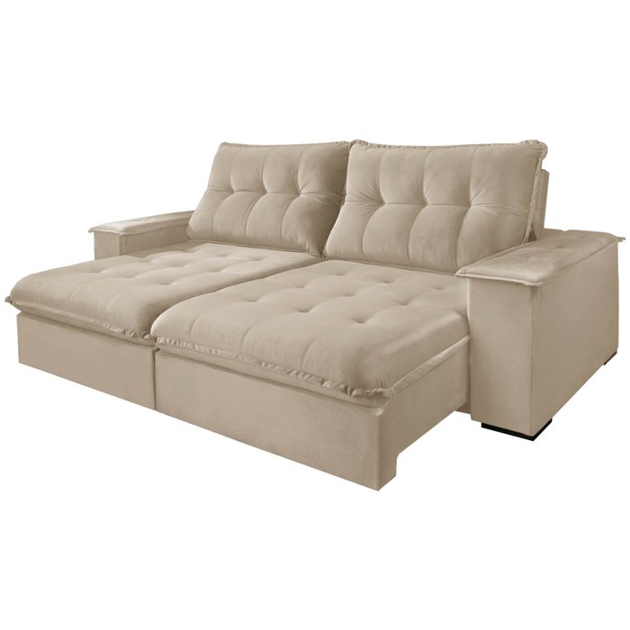 Sofá Guaxupe em Linho 4 Lugares Retrátil e Reclinável 250cm Viero Cor Bege