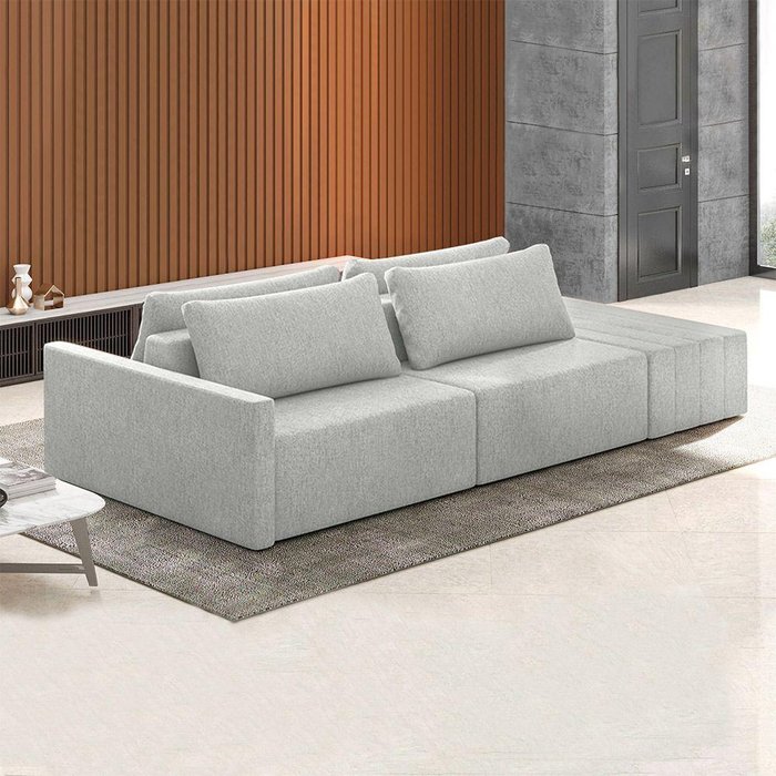 Sofá Ilha Modulado Milos 232cm Puff Lateral Linho Cinza G33 - Gran Belo