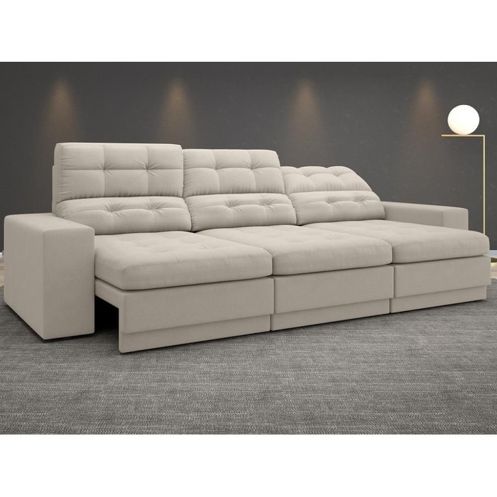 Sofá Jobim 2,30m Assento Retrátil e Reclinável Velosuede - Netsofas - Areia Areia