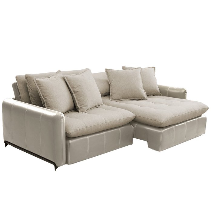 Sofá Lamborghini 2,30m 3 Lugares Couro/Linho Cru