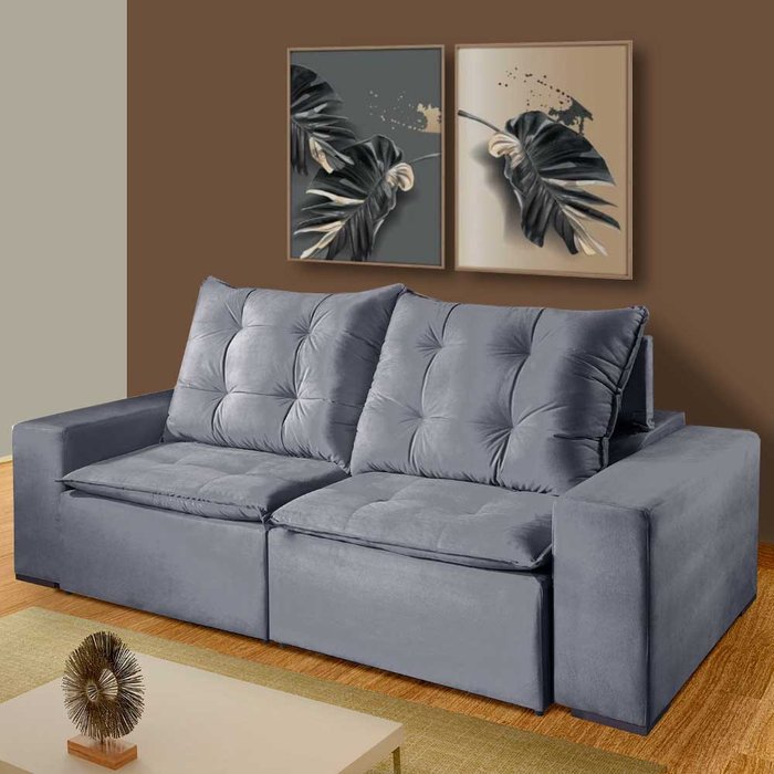Sofá Larissa 3 Lugares Retrátil e Reclinável 2,30M Suede Mundial Estofados Cinza Clássico