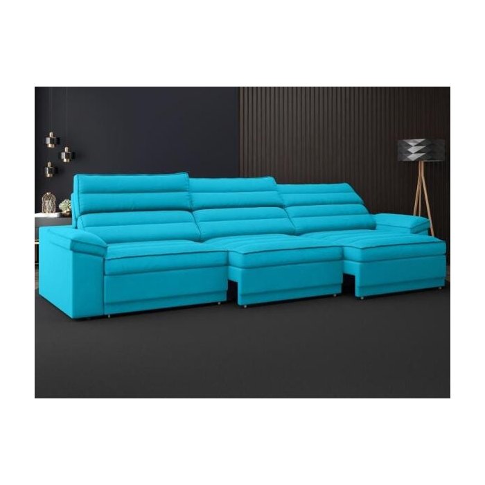 Sofá Lincoln Assento Retrátil e Reclinável Velosuede Turquesa - NetSofás
