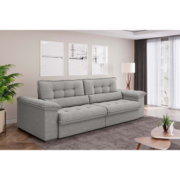 Sofá Linho 4 Lugares Retrátil e Reclinável 230m Majestoso Espresso Móveis Grafite