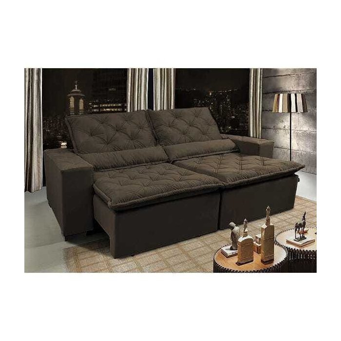 Sofá Lisboa 2,12M Retrátil e Reclinável com Molas No Assento Tecido Suede Café
