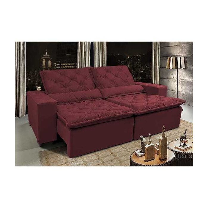 Sofá Lisboa 2,12M Retrátil e Reclinável com Molas No Assento Tecido Suede Vinho