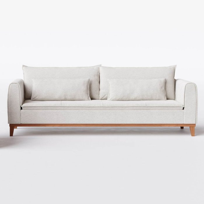 - Encosto fixo e almofadas soltas em fibra siliconizada;