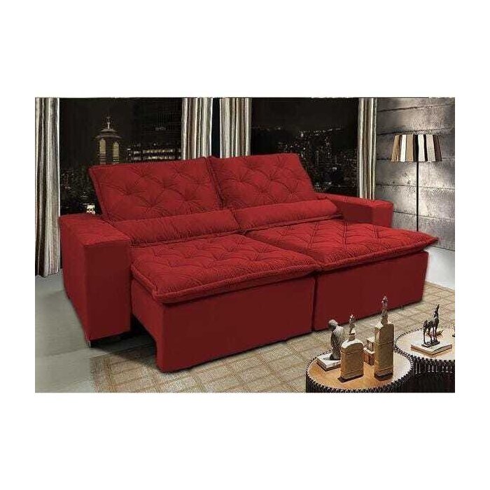Sofá Lisboa 2,72M Retrátil e Reclinável, Molas No Assento Tecido Suede Velusoft Vermelho Cama