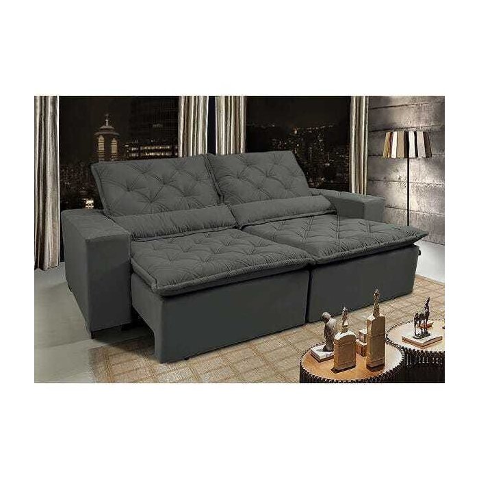 Sofá Lisboa 2,92M Retrátil e Reclinável com Molas No Assento Tecido Suede