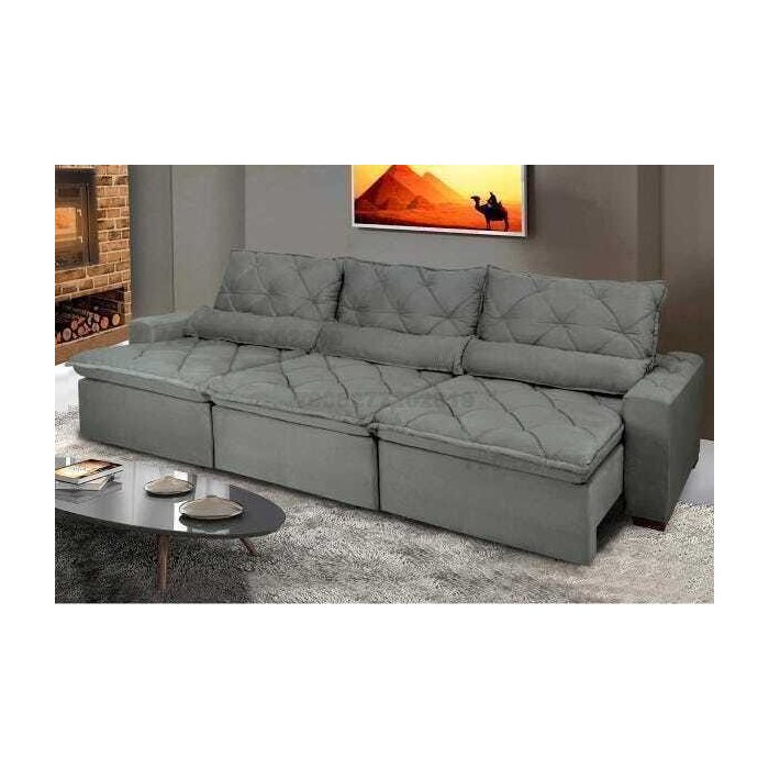 Sofá Lisboa 3,52M Retrátil e Reclinável com Molas No Assento e Almofadas Lombar Tecido Suede Grafite