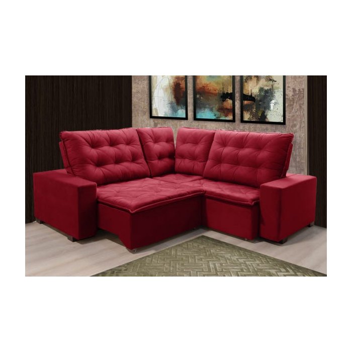 Sofá Lisboa Retrátil e Reclinável Mola Veludo 230x230 Vermelho