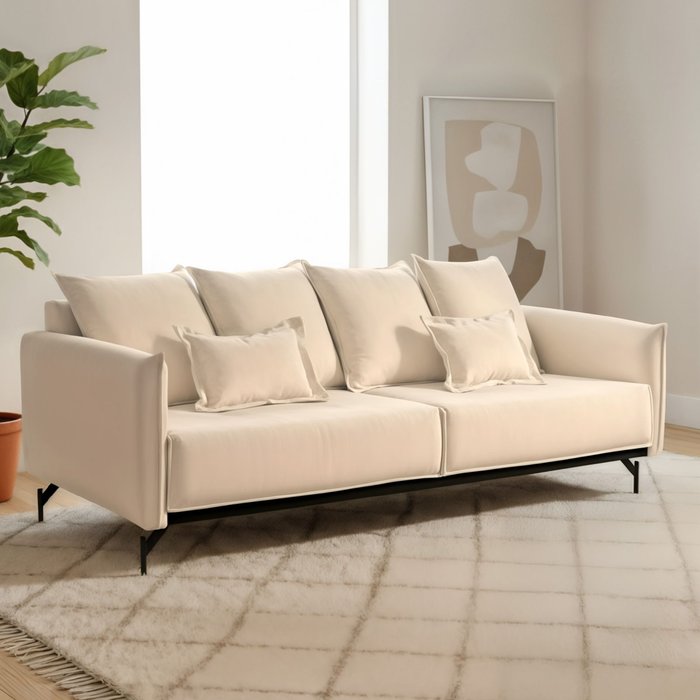 O nosso sofá com base de ferro é aquele tipo de sofá que transforma qualquer sala em um cenário digno de revista! Com design moderno e toque sofisticado, ele traz o charme do tecido bouclé, conhecido pela textura macia e visual elegante. As duas almofadas extras deixam o conforto ainda mais irresistível, perfeito para relaxar, assistir a um filme ou simplesmente curtir o momento. A base de ferro preta dá o toque contemporâneo e garante estabilidade e durabilidade. Ideal para quem busca sofá moderno, confortável e com estilo clean, esse modelo é puro aconchego com muito bom gosto.