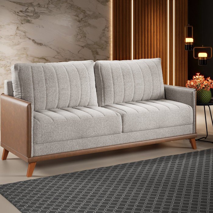 Sofá Living 3 Lugares 200cm Linho Seletto Kaki