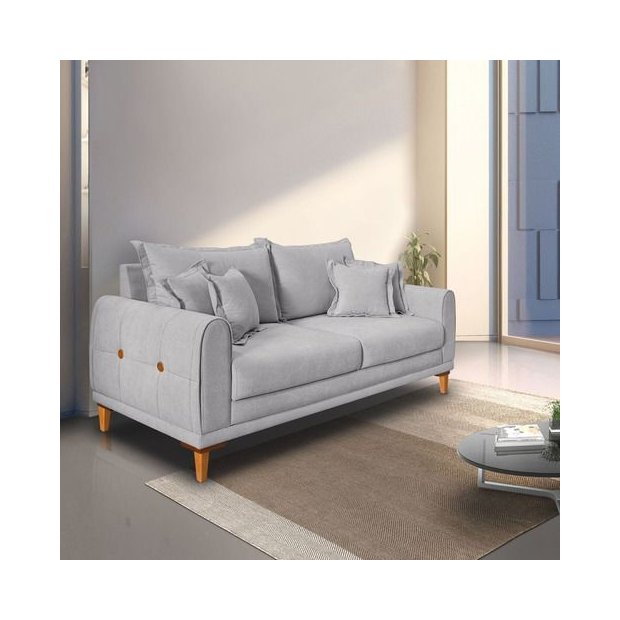 O estofamento em espuma de alta densidade e tecido bouclê proporciona um conforto excepcional, tornando-o perfeito para momentos de relaxamento. Inclui almofadas lisas que complementam o visual e oferecem suporte adicional. Com uma profundidade de 53 cm e altura de 94 cm, este sofá é ideal para acomodar até três pessoas com facilidade.