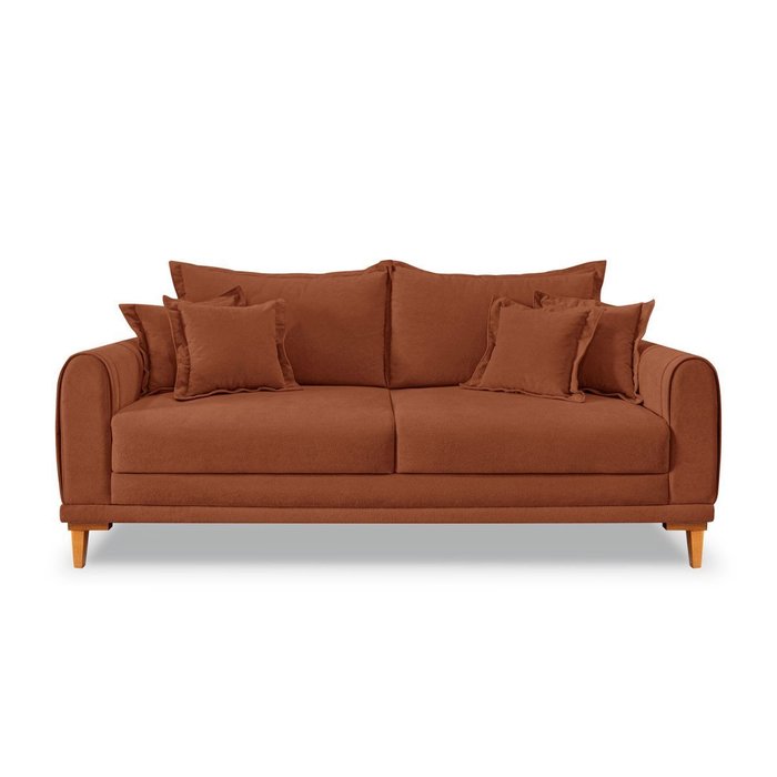 Sofá Living 3 Lugares Bouclê Terracota 2.00m Pés em Madeira Bz Home Decor Terracota