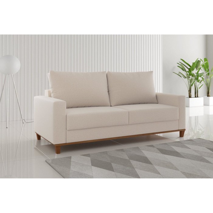 Sofá Living 3 Lugares Fixo Linho Bege 1,8m Suporta 180kg Lívia Bege