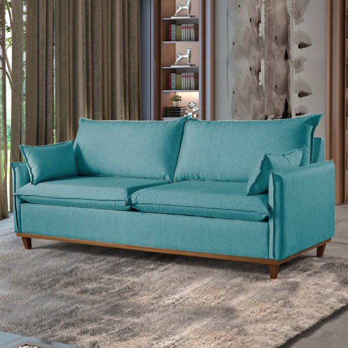 Sofá Living com Almofas 3 Lugares 240cm Escócia em Linho Verde