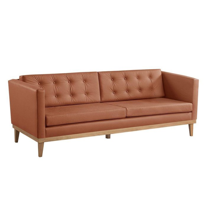 Sofá Living Hibisco 2,19m Em Corino Pés Em Madeira Cor Paçoca