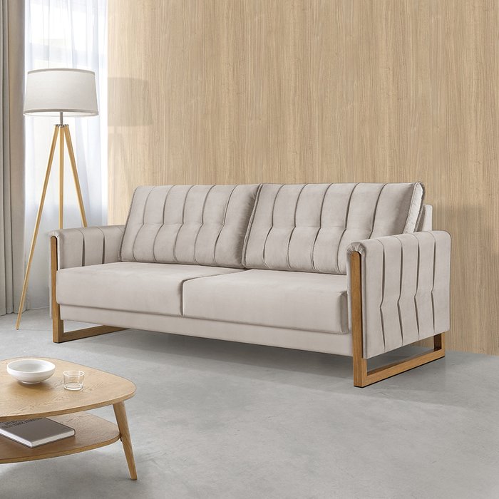 Sofá Living Lottus 2,20m Pés Madeira Veludo - Hungria House:bege BEGE
