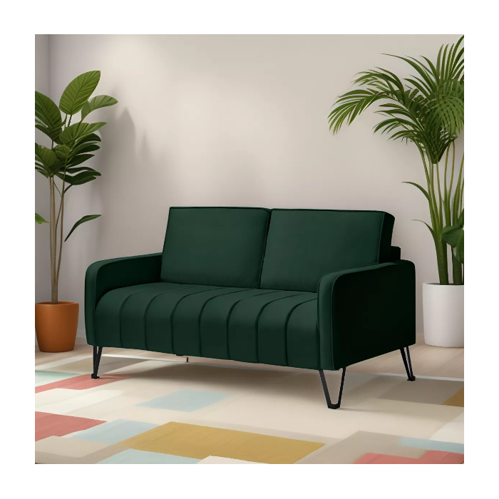 Sofá Living Savana 2 Lugares C/ Pé de Ferro Preto 1,58 Mts Veludo Verde - Espuma D-28
