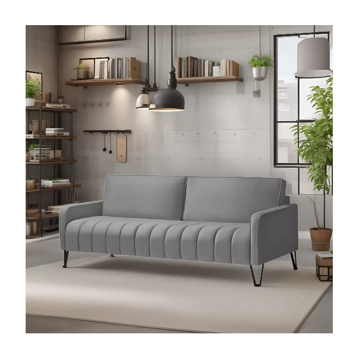 Sofá Living Savana 3 Lugares C/ Pé de Ferro Preto 2,20 Mts Veludo Cinza - Espuma D-28